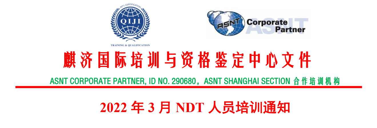 为了更好地满足无损检测人员技能提升和职业规划的需求,麒济国际培训中心已推出 一系列精选网络课程,能够丰富且促进无损检测人员持续学习和积极充电,提高自身专业 技能和行业竞争力。同时,麒济国际培训中心的专业教学团队保证教学质量与学习效果, 确保高质量高效率地取得国际标准规定的培训学时和人员资格证书。现将相关事项通知如下: